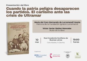 El próximo martes 10 de marzo, a las 19.00 horas, en el Salón de Actos de la Academia, tendrá lugar la presentación de la obra «Cuando la patria peligra desaparecen los partidos.» El carlismo ante las crisis de Ultramar» de Víctor Ibáñez Mancebo.
